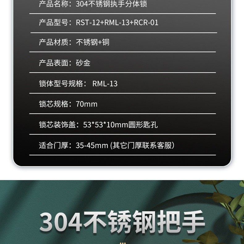 RST-12 金色不銹鋼304分體把手門鎖