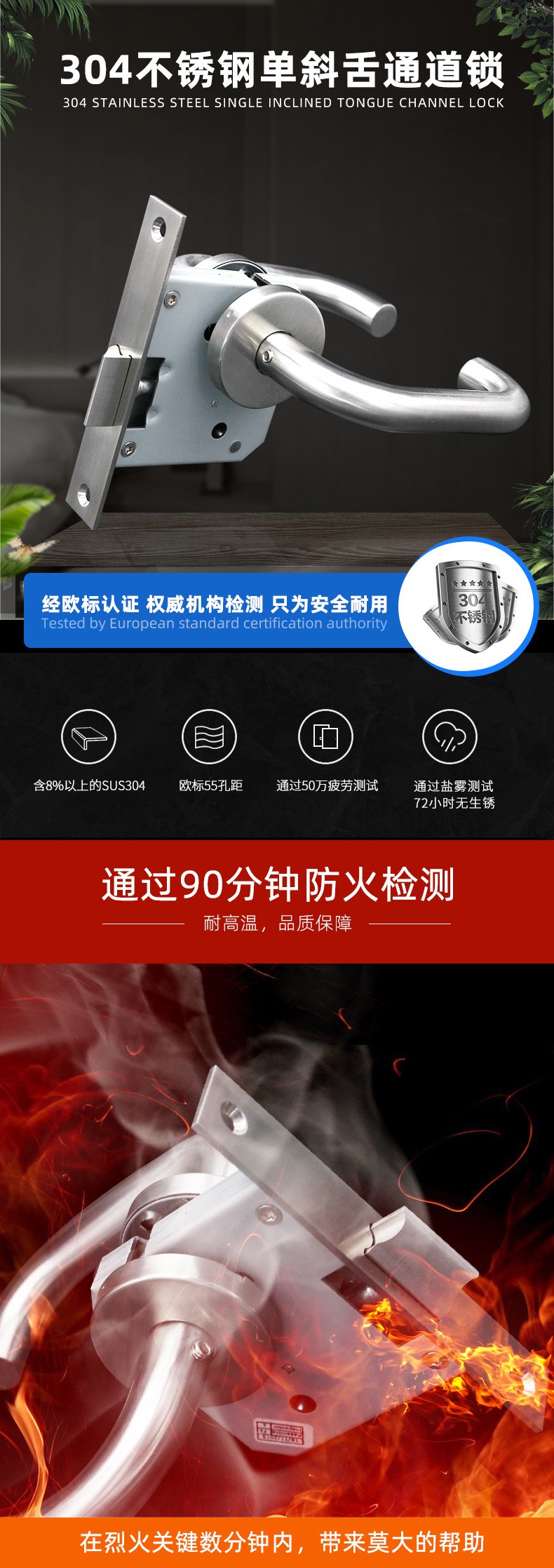 RTH-01 歐標(biāo)單斜舌消防通道防火鎖